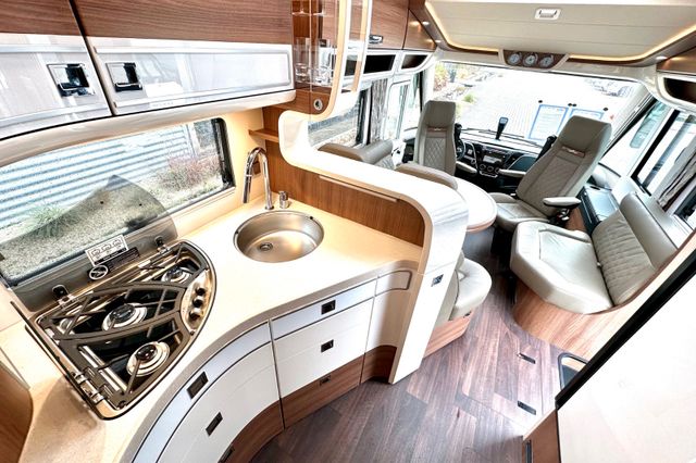 Super-Paket:Chassis-Optionen: Klimaautomatik Fahrerhaus, ESP mit Traction Control und Bergabfahrhilfe, Lederlenkrad mit Option Multifunktionstasten (bei Schaltgetriebe inkl. Leder-Schalthebel), Elektrische Feststellbremse, Armaturenbrettveredelung mit Applikationen in Chrom, Fahrerhauskomfortsitze mit Neigungsverstellung (vorn), Kurbel-Heckstützen zur Wankstabilisierung im Stand; Aufbau-Optionen: Busspiegel „Carthago best view“ mit Einstiegsbeleuchtung, elektrisch verstell- und beheizbar, XL-Aufbautür „Safetyluxe“ (Breite 63 cm) mit Sicherheitsdoppelverriegelung und „coming home“, Zentralverriegelung für Fahrerhaus- und Aufbautür, Außen- u. Rollergaragenklappen, Rollergaragen-Upgrade mit Nadelfilz, Gepäcknetzen, Befestigungssystem, SOG-Toilettenentlüftung über Dachkamin, Alde Wärmetauscher (Nutzung Motorwärme), Truma DuoControl CS, Design-Barschrank mit Gläserhalter und Glas-Set über Küche, Carthago 3er Schiffsuhrenset Nautic in der Hubbettunterseite integriert, Toilette Thetford C260 mit Keramikeinsatz, USB-Steckdose im Dachstauschrank über Heckbett, Vorbereitung Solaranlage, Vorbereitung Sat-Anlage, Vorbereitung Rückfahrkamera (Einzellinse), Radio / Moniceiver Pioneer 6,8“ inkl. DAB+, Radiovorbereitung, Dachantenne, Lautsprecher (4 x), Rückfahrkamerasystem mit Einzellinse, inkl. 7" Farbmonitor seitlich im Armaturenbrett