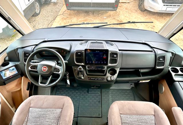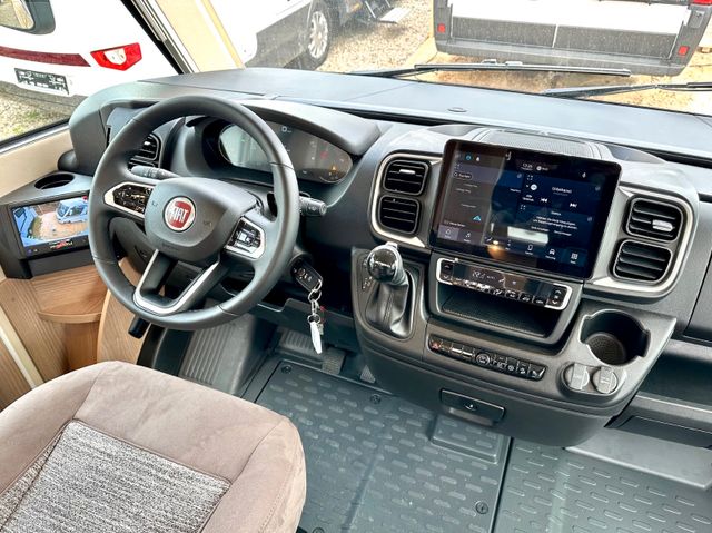 Infotainment-Paket Fiat:Elektrische Feststellbremse, Digitales Kombiinstrument mit Farbdisplay im Armaturenbrett, Lenkrad und Schaltknauf in Leder inkl. Multifunktionstasten, Multimediasystem Fiat 10,1" inkl. Navi, Reisemobil-Routenführung und DAB+, Klimaautomatik Fahrerhaus
