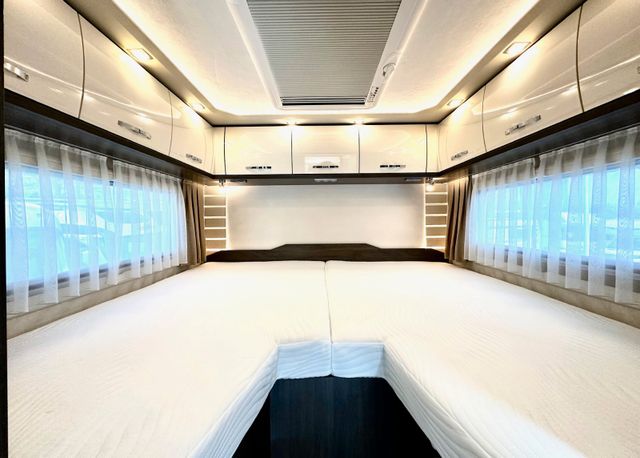 Alkovenbett hochklappbar für bequemen Durchgang zum Führerhaus