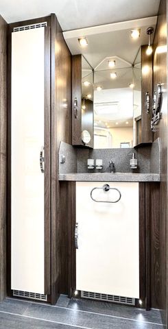 Schiebetüren gegenläufig zwischen Bad und Heckbett