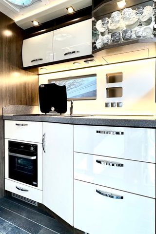 Elektrisch absenkbares Kaffeebord inkl. 230 V- Steckdose und Kaffeemaschine