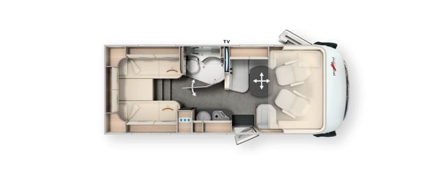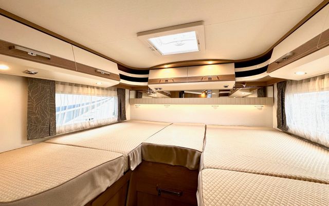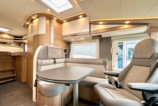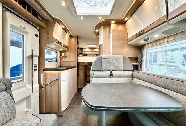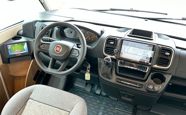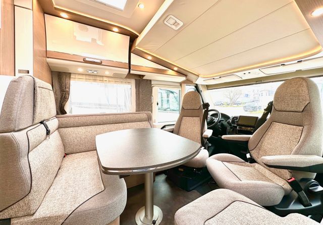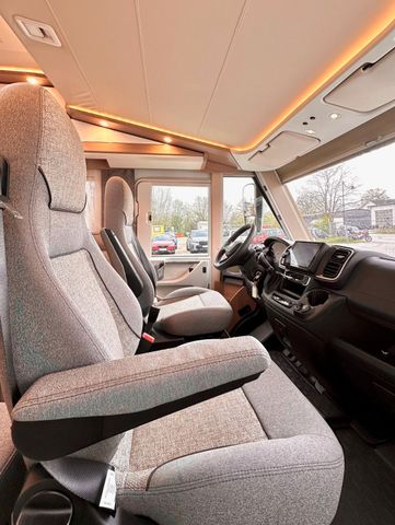 Komfort-Paket:Malibu Rückleuchten mit LED-Leuchtband, Große Garagentür auf Fahrerseite, XL-Aufbautür „premium two 2.0“ (Breite 63 cm) mit Doppelverriegelung, Fenster- und Insektenschutzrollo, Fahrerhausverdunklungssystem: Plissee an Seitenscheiben und Frontscheibe, Dachluke Midi-Heki über L-Wohnsitzgruppe, Indirekte Ambientebeleuchtung Wohnraum und Küche in LED-Technik, Digitales Bedienpanel Truma CP Plus, SOG-Toilettenentlüftung über Dachkamin, Abwasserschlauchset zur komfortablen Entsorgung, USB-Steckdose im Dachstauschrank über Heckbett, Vorbereitung Rückfahrkamera, Vorbereitung Solaranlage, Vorbereitung Sat-Anlage, Vorbereitung TV
