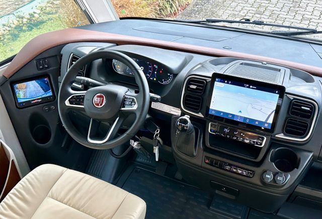 Infotainment-Paket Fiat:Digitales Kombiinstrument mit Farbdisplay im Armaturenbrett, Lenkrad und Schaltknauf in Leder inkl. Multifunktionstasten, Multimediasystem Fiat 10,1" inkl. Navi, Reisemobil-Routenführung und DAB+