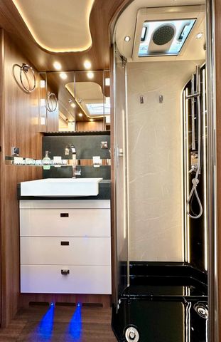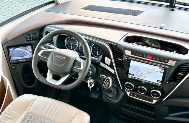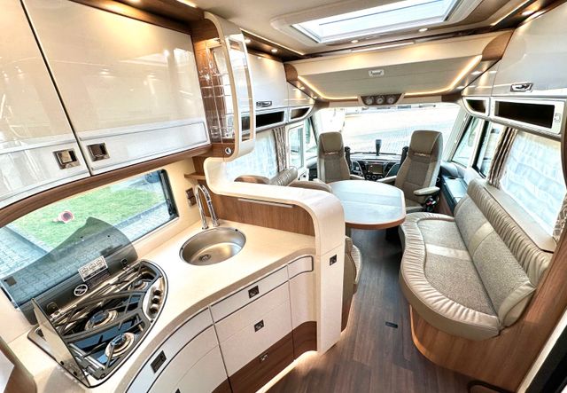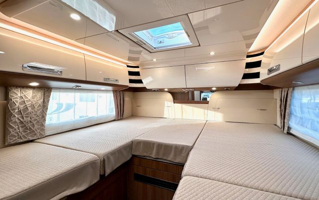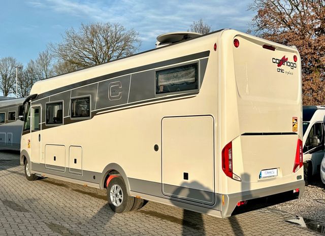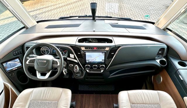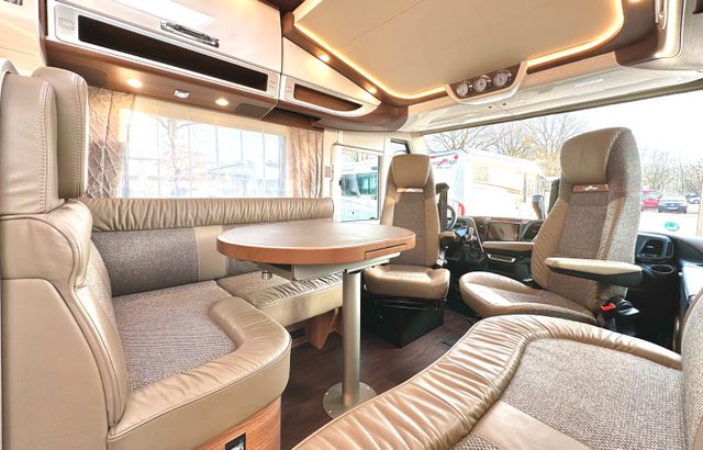 Super-Paket:Chassis-Optionen: Klimaautomatik Fahrerhaus, ESP mit Traction Control und Bergabfahrhilfe, Lederlenkrad mit Option Multifunktionstasten (bei Schaltgetriebe inkl. Leder-Schalthebel), Elektrische Feststellbremse, Armaturenbrettveredelung mit Applikationen in Chrom, Fahrerhauskomfortsitze mit Neigungsverstellung (vorn), Kurbel-Heckstützen zur Wankstabilisierung im Stand; Aufbau-Optionen: Busspiegel „Carthago best view“ mit Einstiegsbeleuchtung, elektrisch verstell- und beheizbar, XL-Aufbautür „Safetyluxe“ (Breite 63 cm) mit Sicherheitsdoppelverriegelung und „coming home“, Zentralverriegelung für Fahrerhaus- und Aufbautür, Außen- u. Rollergaragenklappen, Rollergaragen-Upgrade mit Nadelfilz, Gepäcknetzen, Befestigungssystem, SOG-Toilettenentlüftung über Dachkamin, Alde Wärmetauscher (Nutzung Motorwärme), Truma DuoControl CS, Design-Barschrank mit Gläserhalter und Glas-Set über Küche, Carthago 3er Schiffsuhrenset Nautic in der Hubbettunterseite integriert, Toilette Thetford C260 mit Keramikeinsatz, USB-Steckdose im Dachstauschrank über Heckbett, Vorbereitung Solaranlage, Vorbereitung Sat-Anlage, Vorbereitung Rückfahrkamera (Einzellinse), Radio / Moniceiver Pioneer 6,8“ inkl. DAB+, Radiovorbereitung, Dachantenne, Lautsprecher (4 x), Rückfahrkamerasystem mit Einzellinse, inkl. 7" Farbmonitor seitlich im Armaturenbrett