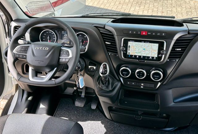 Chassispaket 1 Iveco Daily:Motor 3,0 l mit 207 PS anstelle 160 PS Anhängersteckdose 12 V, 13 polig, Auflastung von 5,2 auf 5,6 t 170 l Kraftstofftank anstelle 90 l (Tankanzeige abweichend) Differentialsperre Klimaanlage Fahrerhaus