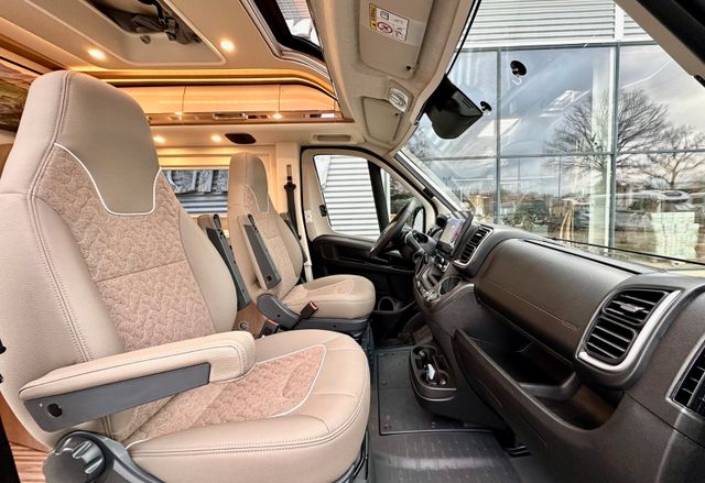 Chassis-Paket:Einparkhilfe mit Sensoren im Heck, Kraftstofftank 90 Liter, Ladebooster, Fahrerhausverdunklungssystem an Front- und Seitenscheiben, Radiovorbereitung mit Dachantenne und DAB+, Lautsprecher (4x), Beifahrersitz höhenverstellbar, Pilotensitze in Wohnraumstoff bezogen inkl. gepolsterten Armlehnen, Fliegenschutzgitter hinter Schiebetür, Außenspiegel, elektrisch verstell- und beheizbar, Elektrisch anklappbare Außenspiegel, Scheinwerferrahmen in schwarz