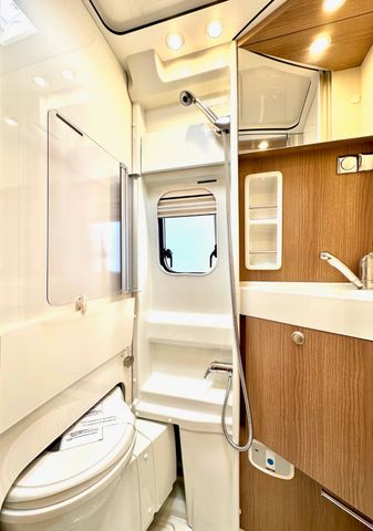 Aufbau-Paket:Dachinnenverkleidung mit Mikrofaser-Klimabelag, Deckenbaldachin Wohnraum mit indirekter LED-Ambientebeleuchtung, Upgrade Küchencenter, Qualitäts-Kaltschaummatratze im Heckbett, Truma CP Plus digitales Bedienpanel, Verzurrsystem Gepäckraum, Abwassertank in Gehäuse eingefasst und isoliert