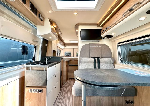 Aufbau-Paket:Dachinnenverkleidung mit Mikrofaser-Klimabelag, Deckenbaldachin Wohnraum mit indirekter LED-Ambientebeleuchtung, Upgrade Küchencenter, Qualitäts-Kaltschaummatratze im Heckbett, Truma CP Plus digitales Bedienpanel, Verzurrsystem Gepäckraum, Abwassertank in Gehäuse eingefasst und isoliert
