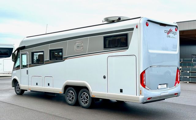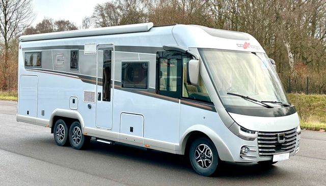 Super-Paket:Chassis-Optionen: Ladebooster 70A, Fahrerhauskomfortsitze mit Neigungs- und Höhenverstellung (vorn / hinten) , Kurbel-Heckstützen zur Wankstabilisierung im Stand, Aufbau-Optionen: Busspiegel „Carthago best view“ mit Einstiegsbeleuchtung, elektrisch verstell- und beheizbar, XL-Aufbautür „Safetyluxe“ (Breite 63 cm) mit Sicherheitsdoppelverriegelung und „coming home“, Zentralverriegelung für Fahrerhaustüren, Aufbautüren, Außen- u. Rollergaragenklappen, Rollergaragen-Upgrade mit Nadelfilz, Gepäcknetzen, Befestigungssystem, SOG-Toilettenentlüftung über Dachkamin, Alde Wärmetauscher (Nutzung Motorwärme), Truma DuoControl CS, Design-Barschrank mit Gläserhalter und Glas-Set über Küche, Carthago 3er Schiffsuhrenset Nautic in der Hubbettunterseite integriert, Toilette Thetford C260 mit Keramikeinsatz, USB-Steckdose im Dachstauschrank über Heckbett, Vorbereitung Solaranlage, Vorbereitung Sat-Anlage, Vorbereitung Rückfahrkamera (Einzellinse), Rückfahrkamerasystem mit Einzellinse, Radio / Moniceiver Pioneer 6,8'' inkl. DAB+, Radiovorb., Dachantenne, Lausprecher (4x), inkl. 7" Farbmonitor seitlich im Armaturenbrett