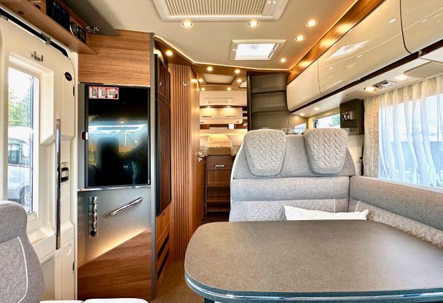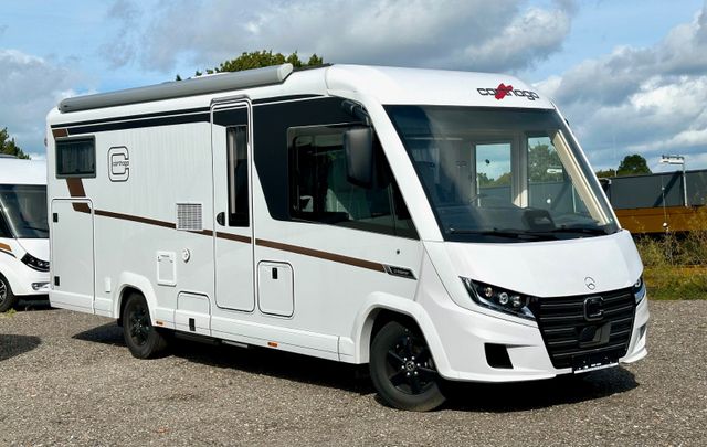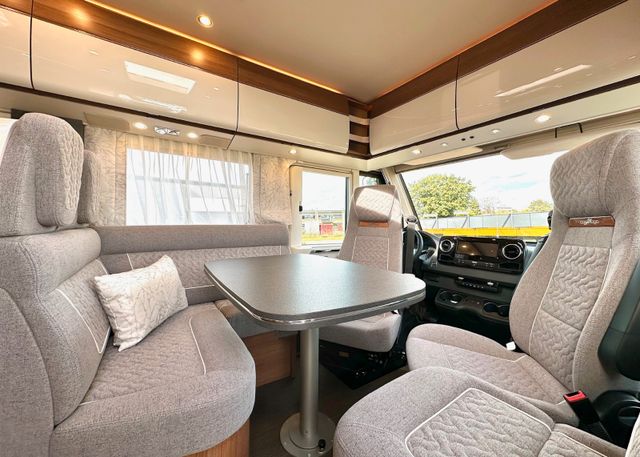 Basis-Plus-Paket:Chassis-Optionen: Radzierblenden, Halbautomatische Klimaanlage Tempmatik, Tempomat, Ladebooster, Vorderachse mit erhöhter Traglast, Kraftstofftank 92 Liter, Lederlenkrad mit Option Multifunktionstasten (bei Schaltgetriebe inkl. Leder-Schalthebel), Kombiinstrument mit Farbdisplay, Regensensor, Elektrische Feststellbremse, Fahrerhauskomfortsitze mit Neigungs- und Höhenverstellung (vorn / hinten), Radiovorbereitung mit Dachantenne mit DAB+, Lautsprecher (4x), MBUX 10,2" Multimedia inkl. Navigation und DAB+, Verkehrszeichenassistent; Aufbau-Optionen: Dachluke Midi-Heki mit LED-Spots über L-Wohnsitzgruppe, Große Rollergaragentür auf der Fahrerseite, XL-Aufbautür „premium two 2.0“ (Breite 63 cm) mit Doppelverriegelung, Fenster- und Insektenschutzrollo, SOG-Toilettenentlüftung, Abwasserschlauchset zur komfortablen Entsorgung, USB-Steckdose im Dachstauschrank über Heckbett, Vorbereitung Dachhaubenlüfter elektrisch, Vorbereitung Solaranlage, Vorbereitung Sat-Anlage, Vorbereitung Rückfahrkamera (Einzellinse)