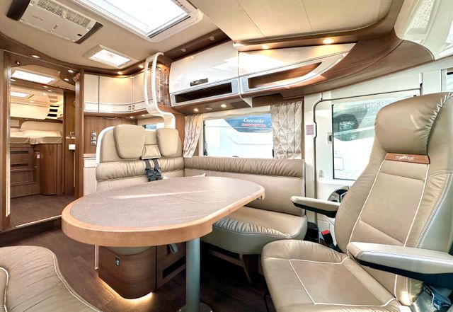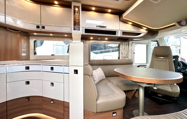Super-Paket:Vollautomatische Klimaanlage THERMOTRONIC, Tempomat, Ladebooster, Kraftstofftank 92 Liter, Lederlenkrad mit Option Multifunktionstasten (bei Schaltgetriebe inkl. Leder-Schalthebel), Kombiinstrument mit Farbdisplay, Regensensor, Elektrische Feststellbremse, Fahrerhauskomfortsitze mit Neigungs- und Höhenverstellung (vorn / hinten), Kurbel-Heckstützen zur Wankstabilisierung im Stand; Aufbau-Optionen: Busspiegel „Carthago best view“ mit Einstiegsbeleuchtung, elektr. verstell- und beheizbar, XL-Aufbautür „Safetyluxe“ (B: 63 cm) mit Sicherheitsdoppelverriegelung und „coming home“, Zentralverriegelung für Fahrerhaus- und Aufbautür, Außen- u. Rollergaragenklappen, Rollergaragen-Upgrade mit Nadelfilz, Gepäcknetzen, Befestigungssystem, SOG-Toilettenentlüftung über Dachkamin, Alde Eärmetauscher (Nutzung Motorwärme), Truma DuoControl CS, Design-Barschrank mit Gläserhalter und Glas-Set über Küche, Carthago 3er Schiffsuhrenset Nautic in der Hubbettunterseite integriert, Toilette Thetford C260 mit Keramikeinsatz, USB-Steckdose im Dachstauschrank über Heckbett, Vorbereitung Solaranlage, Vorbereitung Sat-Anlage, Vorbereitung Rückfahrkamera (Einzellinse), Radiovorb., Dachantenne, Lautsprecher (4 x), Rückfahrkamerasystem mit Einzellinse, inkl. 7" Farbmonitor seitlich im Armaturenbrett