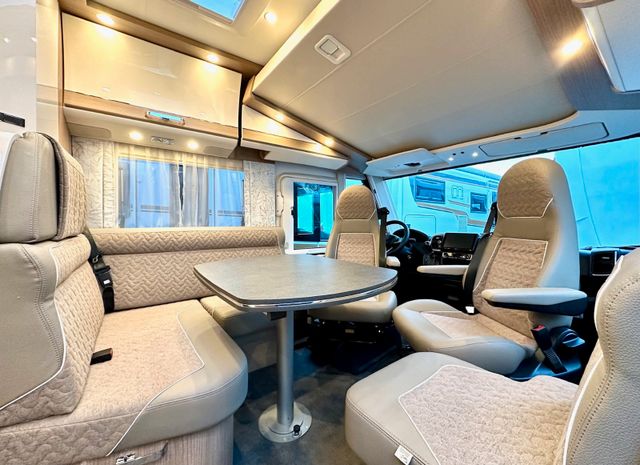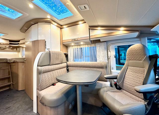 Komfort-Paket:Malibu Rückleuchten mit LED-Leuchtband, Große Garagentür auf Fahrerseite, XL-Aufbautür „premium two 2.0“ (Breite 63 cm) mit Doppelverriegelung, Fenster- und Insektenschutzrollo, Hohlwaben-Isolierfrontplissee mit vertikaler Bedienung und Faltplissee Seitenscheiben, Dachluke Midi-Heki über L-Wohnsitzgruppe, Indirekte Ambientebeleuchtung Wohnraum und Küche in LED-Technik, Digitales Bedienpanel Truma CP Plus, SOG-Toilettenentlüftung, Abwasserschlauchset zur komfortablen Entsorgung, USB-Steckdose im Dachstauschrank über Heckbett, Vorbereitung Rückfahrkamera, Vorbereitung Solaranlage, Vorbereitung Sat-Anlage, Vorbereitung TV