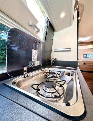 Aufbau-Paket:Dachinnenverkleidung mit Mikrofaser-Klimabelag, Deckenbaldachin Wohnraum mit indirekter LED-Ambientebeleuchtung, Upgrade Küchencenter, Qualitäts-Kaltschaummatratze im Heckbett, Truma CP Plus digitales Bedienpanel, Verzurrsystem Gepäckraum, Abwassertank in Gehäuse eingefasst und isoliert