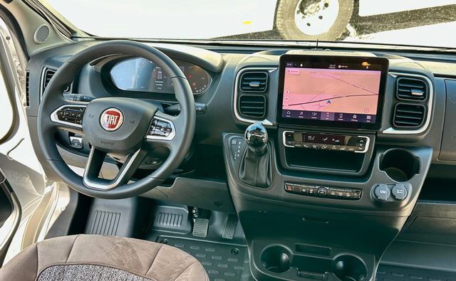 Infotainment-Paket Fiat:Elektrische Feststellbremse, Keyless Entry & Go, Digitales Kombiinstrument mit Farbdisplay im Armaturenbrett, Multimediasystem Fiat 10,1“ inkl. Navi, Reisemobil-Routenführung und DAB+, Multifunktionslenkrad, Klimaautomatik Fahrerhaus
