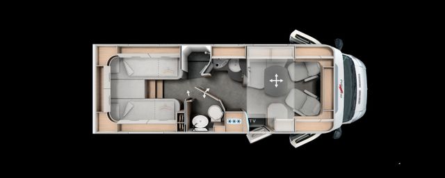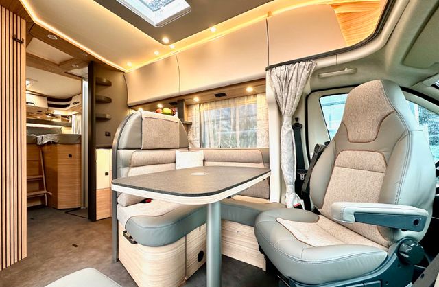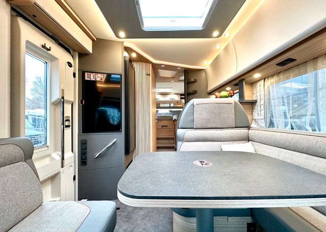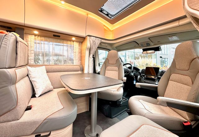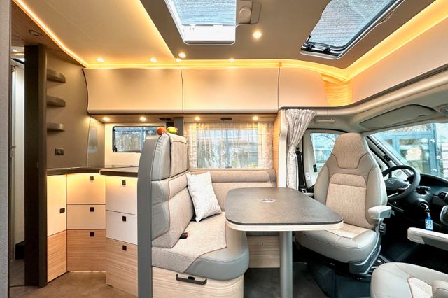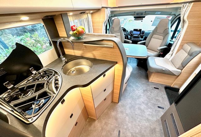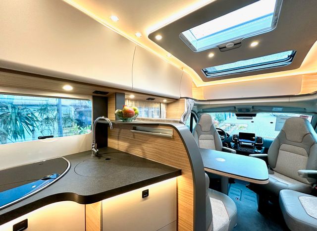 Chassis-Komfort-Paket:Malibu Radzierblenden, Skid-Plate schwarz, Nebelscheinwerfer mit Abbiegelicht, Scheinwerferrahmen in schwarz, Tempomat (Serie), Zentralverriegelung Fahrerhaustür, Außenspiegel elektrisch verstellund beheizbar, elektr. Fensterheber, Ladebooster, Kraftstofftank 90 Liter, Fahrerhauskomfortsitze mit Neigungs- und Höhenverstellung (vorn / hinten), Radiovorbereitung mit Dachantenne mit DAB+, Lautsprecher (4x), DVB-T2 Empfang, Pioneer Radio/Moniceiver 6,8" inkl. DAB+, Aufbau-Optionen: Malibu Rückleuchten mit LED-Leuchtband, Große Garagentür auf Fahrerseite, XL-Aufbautür „premium two 2.0“ (Breite 63 cm) mit Doppelverriegelung, Fenster- und Insektenschutzrollo, Fahrerhausverdunklungssystem: Plissee an Seitenscheiben und Frontscheibe, Dachluke Midi-Heki über L-Wohnsitzgruppe, Indirekte Ambientebeleuchtung Wohnraum und Küche in LED-Technik, Digitales Bedienpanel Truma CP Plus, SOG-Toilettenentlüftung, USB-Steckdose im Dachstauschrank über Heckbett, Abwasserschlauchset zur komfortablen Entsorgung, USB-Steckdose im Dachstauschrank über Heckbett, Vorbereitung Rückfahrkamera, Vorbereitung Solaranlage, Vorbereitung Sat-Anlage, Vorbereitung TV