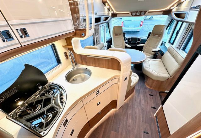 Super-Paket:Chassis-Optionen: Ladebooster 70A, Fahrerhauskomfortsitze mit Neigungs- und Höhenverstellung (vorn / hinten) , Kurbel-Heckstützen zur Wankstabilisierung im Stand, Aufbau-Optionen: Busspiegel „Carthago best view“ mit Einstiegsbeleuchtung, elektrisch verstell- und beheizbar, XL-Aufbautür „Safetyluxe“ (Breite 63 cm) mit Sicherheitsdoppelverriegelung und „coming home“, Zentralverriegelung für Fahrerhaustüren, Aufbautüren, Außen- u. Rollergaragenklappen, Rollergaragen-Upgrade mit Nadelfilz, Gepäcknetzen, Befestigungssystem, SOG-Toilettenentlüftung über Dachkamin, Alde Wärmetauscher (Nutzung Motorwärme), Truma DuoControl CS, Design-Barschrank mit Gläserhalter und Glas-Set über Küche, Carthago 3er Schiffsuhrenset Nautic in der Hubbettunterseite integriert, Toilette Thetford C260 mit Keramikeinsatz, USB-Steckdose im Dachstauschrank über Heckbett, Vorbereitung Solaranlage, Vorbereitung Sat-Anlage, Vorbereitung Rückfahrkamera (Einzellinse), Rückfahrkamerasystem mit Einzellinse, Radio / Moniceiver Pioneer 6,8'' inkl. DAB+, Radiovorb., Dachantenne, Lausprecher (4x), inkl. 7" Farbmonitor seitlich im Armaturenbrett