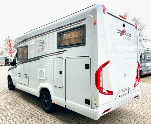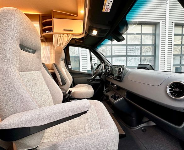 Basis-Plus-Paket:Radzierblenden, Halbautomatische Klimaanlage Tempmatic, Tempomat, Ladebooster, Vorderachse mit erhöhter Traglast, Kraftstofftank 92 Liter, Lederlenkrad mit Option Multifunktionstasten (bei Schaltgetriebe inkl. Schalthebel in Leder), Kombiinstrument mit Farbdisplay, Regensensor, Elektrische Feststellbremse, Wärmedämmendes Glas mit Bandfilter an der Frontscheibe, Fahrerhausverdunklungssystem: Plissee an Front- und Seitenscheiben, Fahrerhauskomfortsitze mit Neigungs- und Höhenverstellung (vorn / hinten), Radiovorbereitung mit Dachantenne mit DAB+, Lautsprecher (4x), MBUX 10,2" Multimedia inkl. Navigation und DAB+, Verkehrszeichenassistent; Aufbau-Optionen: Dachluke Midi-Heki mit LED-Spots über L-Wohnsitzgruppe, Große Rollergaragentür auf der Fahrerseite, XL-Aufbautür „premium two 2.0“ (Breite 63 cm) mit Doppelverriegelung, Fenster- und Insektenschutzrollo, SOG-Toilettenentlüftung, Abwasserschlauchset zur komfortablen Entsorgung, USB-Steckdose im Dachstauschrank über Heckbett, Vorbereitung Dachhaubenlüfter elektrisch, Vorbereitung Solaranlage, Vorbereitung Sat-Anlage, Vorbereitung Rückfahrkamera (Einzellinse)