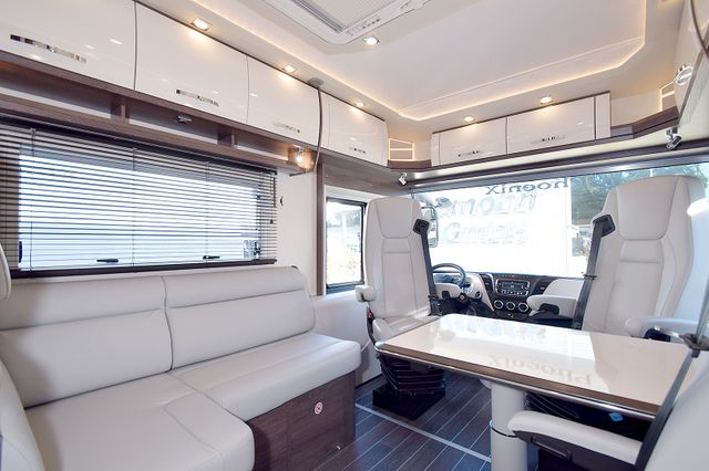 Luxuspaket Dailymit Polster Leder:Lackierung Liner Aufbau silber, Schürzen, Stoßstange hinten, vordere Stoßstange und Radläufe silbergrau, Spiegel in schwarz Wandlerautomatik-Getriebe Hi-Matic mit 8 Schaltstufen, Alu-Felgen 16" Vorderachse mit Spurverbreiterung und Alu-Radblenden Hinterachse, Polster in sehr hochwertigem Leder, Baldachin für HEKI 3 mit 4 LED-Spots und Dimmer