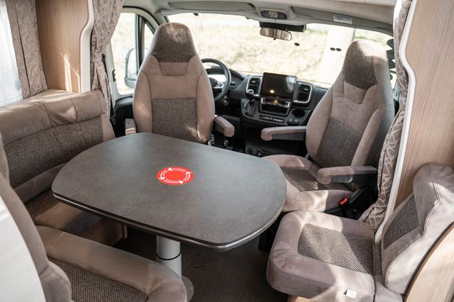 Basis-Plus-Paket:Carthago Radzierblenden, Klimaautomatik Fahrerhaus, Ladebooster, Fahrerhausverdunklungssystem: Plissee an Front- und Seitenscheiben, Fahrerhauskomfortsitze mit Neigungs- und Höhenverstellung (vorn / hinten), Armaturenbrettveredelung: Lüftungsgitter in Chrom, Radiovorbereitung mit Dachantenne mit DAB+, Lautsprecher (4x), Radio / Moniceiver Pioneer 6,8" inkl. DAB+, Aufbau-Optionen: Dachluke Midi-Heki mit LED-Spots über L-Wohnsitzgruppe, Große Rollergaragentür auf der Fahrerseite, XL-Aufbautür „premium two 2.0“ (B: 63 cm) mit Doppelverriegelung, Fenster- und Insektenschutzrollo, SOG-Toilettenentlüftung über Dachkamin, Abwasserschlauchset zur komfortablen Entsorgung, USB-Steckdose im Dachstauschrank über Heckbett, Vorbereitung Dachhaubenlüfter elektrisch, Vorbereitung Solaranlage, Vorbereitung Sat-Anlage, Vorbereitung Rückfahrkamera (Einzellinse)