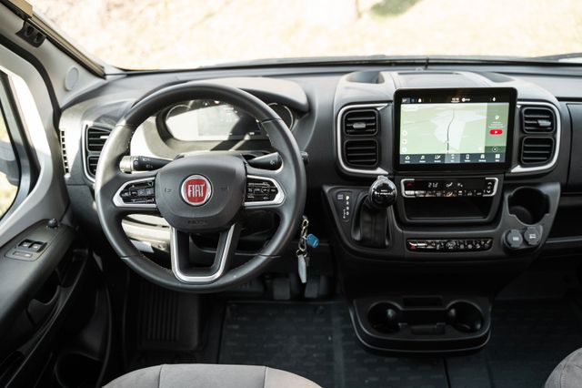 Infotainment-Paket Fiat:Digitales Kombiinstrument mit Farbdisplay im Armaturenbrett, Lenkrad und Schaltknauf in Leder inkl. Multifunktionstasten, Multimediasystem Fiat 10,1" inkl. Navi, Reisemobil-Routenführung und DAB+