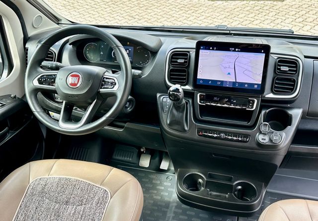 Infotainment-Paket Fiat:Elektrische Feststellbremse, Keyless Entry & Go, Digitales Kombiinstrument mit Farbdisplay im Armaturenbrett, Multimediasystem Fiat 10,1“ inkl. Navi, Reisemobil-Routenführung und DAB+, Multifunktionslenkrad, Klimaautomatik Fahrerhaus