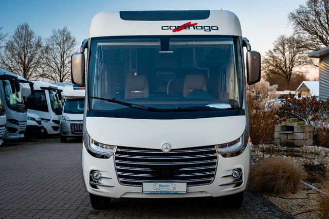 Super-Paket:Vollautomatische Klimaanlage THERMOTRONIC, Tempomat, Ladebooster, Automatikgetriebe 9G-TRONIC inkl. Hold-Funktion, Kraftstofftank 92 Liter, Lederlenkrad mit Option Multifunktionstasten (bei Schaltgetriebe inkl. Leder-Schalthebel), Kombiinstrument mit Farbdisplay, Regensensor, Elektrische Feststellbremse, Fahrerhauskomfortsitze mit Neigungs- und Höhenverstellung (vorn / hinten), Kurbel-Heckstützen zur Wankstabilisierung im Stand; Aufbau-Optionen: Busspiegel „Carthago best view“ mit Einstiegsbeleuchtung, elektr. verstell- und beheizbar, XL-Aufbautür „Safetyluxe“ (B: 63 cm) mit Sicherheitsdoppelverriegelung und „coming home“, Zentralverriegelung für Fahrerhaus- und Aufbautür, Außen- u. Rollergaragenklappen, Rollergaragen-Upgrade mit Nadelfilz, Gepäcknetzen, Befestigungssystem, SOG-Toilettenentlüftung über Dachkamin, Alde Wärmetauscher (Nutzung Motorwärme), Truma DuoControl CS, Design-Barschrank mit Gläserhalter und Glas-Set über Küche, Carthago 3er Schiffsuhrenset Nautic in der Hubbettunterseite integriert, Toilette Thetford C260 mit Keramikeinsatz, USB-Steckdose im Dachstauschrank über Heckbett, Vorbereitung Solaranlage, Vorbereitung Sat-Anlage, Vorbereitung Rückfahrkamera (Einzellinse), Radio/Moniceiver Pioneer 6,8" inkl. DAB+, Radiovorb., Dachantenne, Lautsprecher (4 x), Rückfahrkamerasystem mit Einzellinse, inkl. 7" Farbmonitor seitlich im Armaturenbrett