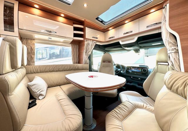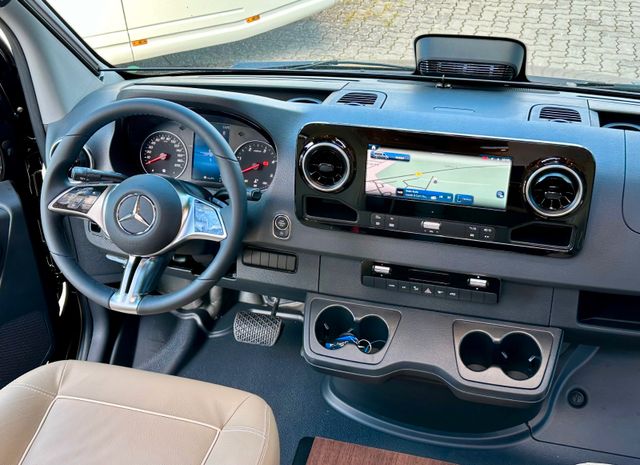Super-Paket:Halbautomatische Klimaanlage Tempmatik, Tempomat, Ladebooster, Kraftstofftank 92 Liter, Vorderachse mit erhöhter Traglast, Lederlenkrad mit Option Multifunktionstasten (bei Schaltgetriebe inkl. Leder-Schalthebel), Kombiinstrument mit Farbdisplay, Regensensor, Elektrische Feststellbremse, Wärmedämmendes Glas mit Bandfilter an der Frontscheibe, Fahrerhauskomfortsitze mit Neigungs- und Höhenverstellung (vorn / hinten), Fahrerhausverdunklungssystem, Plissee an Seitenscheiben und Frontscheibe, Kurbel-Heckstützen zur Wankstabilisierung im Stand, MBUX 10,2" Multimedia inkl. Navigation und DAB+, Verkehrszeichenassistent, Aufbau-Optionen: XL-Aufbautür „premium two 2.0“ (Breite 63 cm) mit Doppelverriegelung, Fenster- und Insektenschutzrollo, Zentralverriegelung Fahrerhaustüren und Aufbautür mit Funktion „coming home“,Rollergaragen-Upgrade mit Nadelfilz, Gepäcknetzen, SOG-Toilettenentlüftung über Dachkamin, Truma DuoControl CS, Design-Barschrank mit Gläserhalter und Glas-Set über Küche, USB-Steckdose im Dachstauschrank über Heckbett, Vorbereitung Solaranlage, Vorbereitung Sat-Anlage, Vorbereitung Rückfahrkamera (Einzellinse), Rückfahrkamerasystem mit Einzellinse
