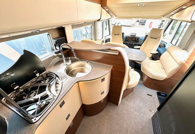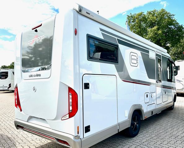 Super-Paket:Chassis-Optionen: Halbautomatische Klimaanlage Tempmatik, Tempomat, Ladebooster, Kraftstofftank 92 Liter, Vorderachse mit erhöhter Traglast, Lederlenkrad mit Option Multifunktionstasten (bei Schaltgetriebe inkl. Leder-Schalthebel), Kombiinstrument mit Farbdisplay, Regensensor, Elektrische Feststellbremse, Fahrerhauskomfortsitze mit Neigungs- und Höhenverstellung (vorn / hinten), Kurbel-Heckstützen zur Wankstabilisierung im Stand, MBUX 10,2" Multimedia inkl. Navigation und DAB+, Verkehrszeichenassistent, Aufbau-Optionen: Busspiegel „Carthago best view“ mit Einstiegsbeleuchtung, elektrisch verstell- und beheizbar, XL-Aufbautür „premium two 2.0“ (Breite 63 cm) mit Doppelverriegelung, Fenster- und Insektenschutzrollo, Zentralverriegelung Fahrerhaustüren und Aufbautür, mit Funktion „coming home“, Rollergaragen-Upgrade mit Nadelfilz, Gepäcknetzen, Befestigungssystem, SOG-Toilettenentlüftung über Dachkamin, Truma DuoControl CS, Design-Barschrank mit Gläserhalter und Glas-Set über Küche, USB-Steckdose im Dachstauschrank über Heckbett, Vorbereitung Solaranlage, Vorbereitung Sat-Anlage, Vorbereitung Rückfahrkamera (Einzellinse), Radiovorb., Dachantenne, Lausprecher (4x), Rückfahrkamerasystem mit Einzellinse, inkl. 7" Farbmonitor seitlich im Armaturenbrett