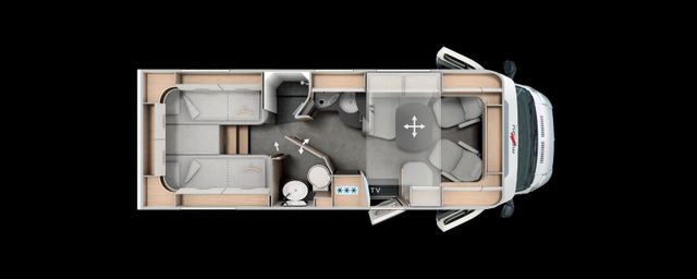 Chassis-Komfort-Paket:Malibu Radzierblenden, Skid-Plate schwarz, Nebelscheinwerfer mit Abbiegelicht, Scheinwerferrahmen in schwarz, Tempomat (Serie), Zentralverriegelung Fahrerhaustür, Außenspiegel elektrisch verstellund beheizbar, elektr. Fensterheber, Ladebooster, Kraftstofftank 90 Liter, Fahrerhauskomfortsitze mit Neigungs- und Höhenverstellung (vorn / hinten), Radiovorbereitung mit Dachantenne mit DAB+, Lautsprecher (4x), DVB-T2 Empfang, Pioneer Radio/Moniceiver 6,8" inkl. DAB+, Aufbau-Optionen: Malibu Rückleuchten mit LED-Leuchtband, Große Garagentür auf Fahrerseite, XL-Aufbautür „premium two 2.0“ (Breite 63 cm) mit Doppelverriegelung, Fenster- und Insektenschutzrollo, Fahrerhausverdunklungssystem: Plissee an Seitenscheiben und Frontscheibe, Dachluke Midi-Heki über L-Wohnsitzgruppe, Indirekte Ambientebeleuchtung Wohnraum und Küche in LED-Technik, Digitales Bedienpanel Truma CP Plus, SOG-Toilettenentlüftung, USB-Steckdose im Dachstauschrank über Heckbett, Abwasserschlauchset zur komfortablen Entsorgung, USB-Steckdose im Dachstauschrank über Heckbett, Vorbereitung Rückfahrkamera, Vorbereitung Solaranlage, Vorbereitung Sat-Anlage, Vorbereitung TV